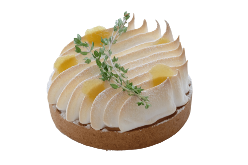 酸味のある無農薬レモンクリームにタイムの香りをつけたメレンゲの飾り